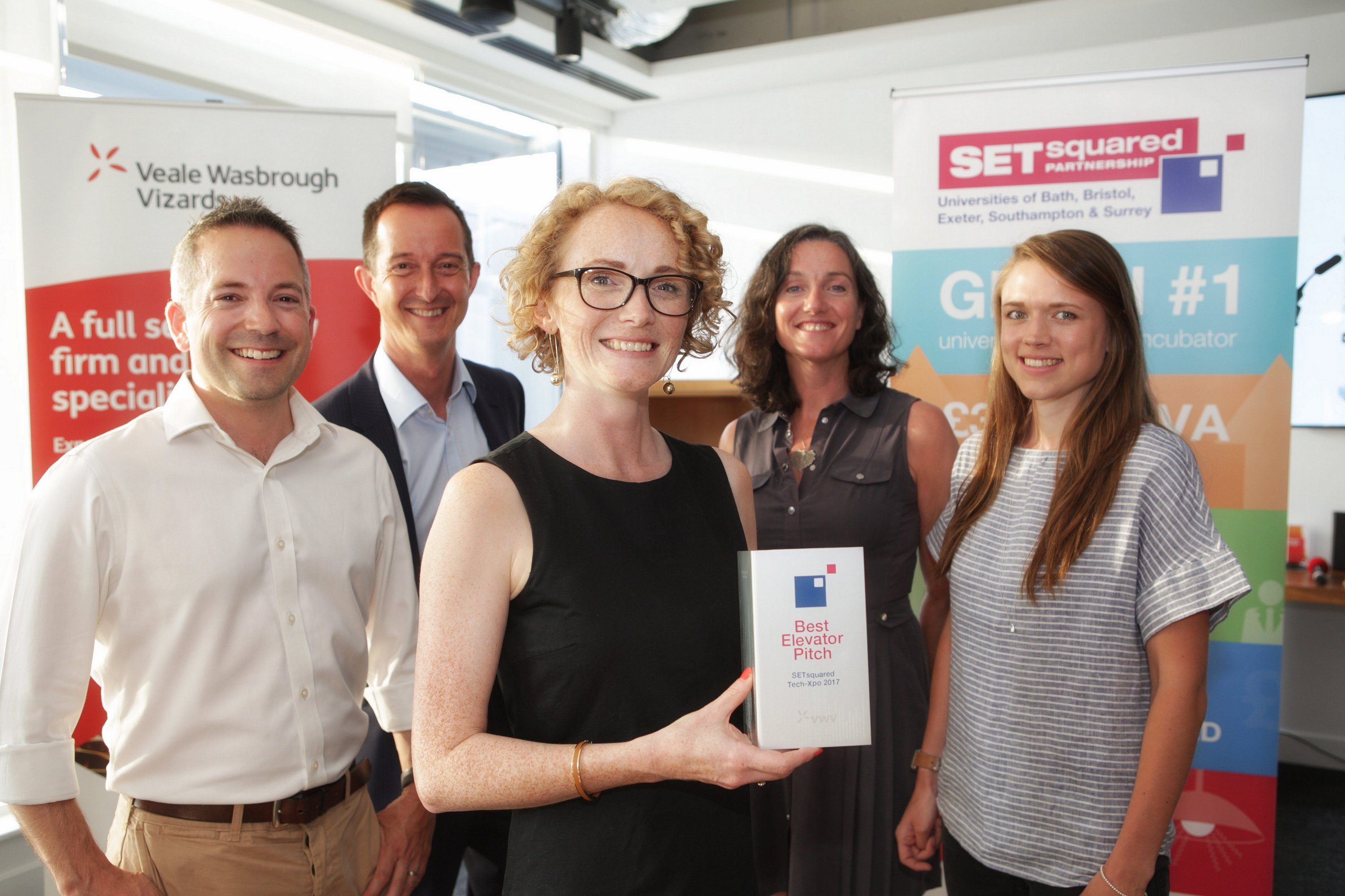 Pictured: Lisa Matthews, centre, of Kairo, winner of SETsquared Bristol’s ‘Best Elevator Pitch’ award last year at Tech-Xpo 2. Lisa is flanked by 2017 Tech-Xpo sponsors Nathan Guest of VWV, David Goodall of Barclays and Marina Traversari and Hazel Fleming of Oracle Startup Cloud Accelerator